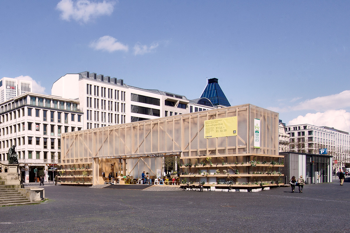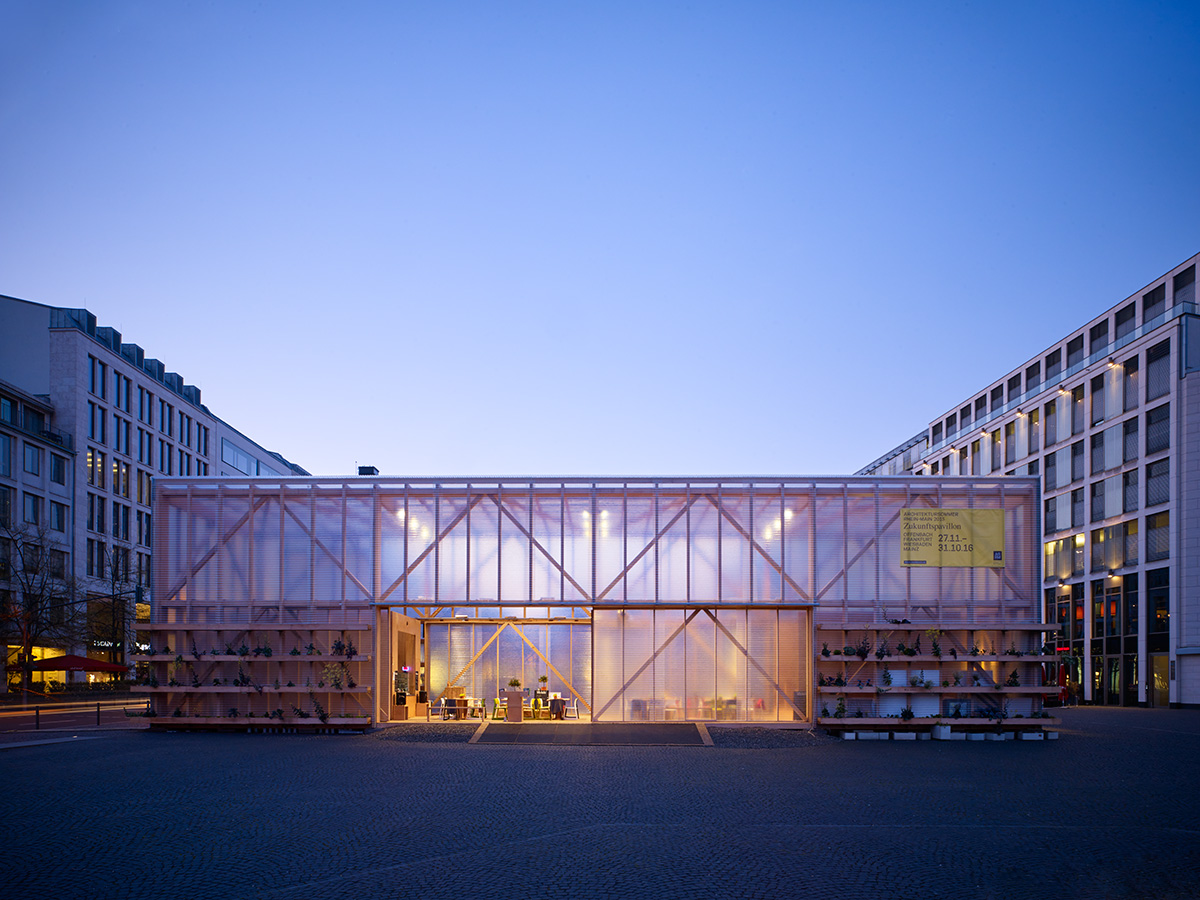 Besonderes Augenmerk des Architektursommers war der sogenannte „Zukunftspavillon“ auf dem Goetheplatz im Zentrum von Frankfurt. Ca. 1 Jahr stand der 30 Meter lange und 8 Meter hohe Fachwerk-Pavillon aus Buchenholz im Herzen der Stadt. Sein Architekt ist Ian Shaw aus Frankfurt/Main. Der temporäre Bau bot 1 Jahr lang Platz für interkulturellen Austausch, Ausstellungen, Vorträge und Workshops und hiess die BürgerInnen der Stadt mit eigener Gastronomie Willkommen.
