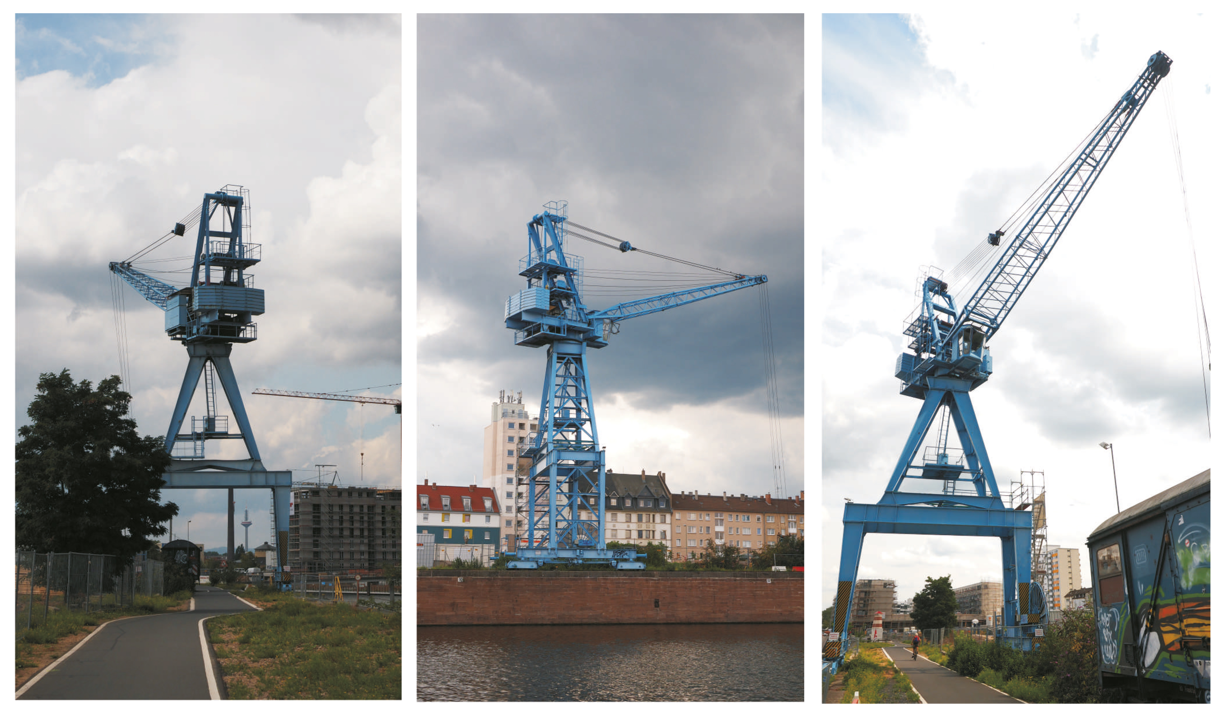 Der stillgelegte Kran am Gutschepark im Offenbacher Hafenviertel wurde zu einem Ort für kulturelle und künstlerische Interventionen und als begehbares Objekt umgebaut.