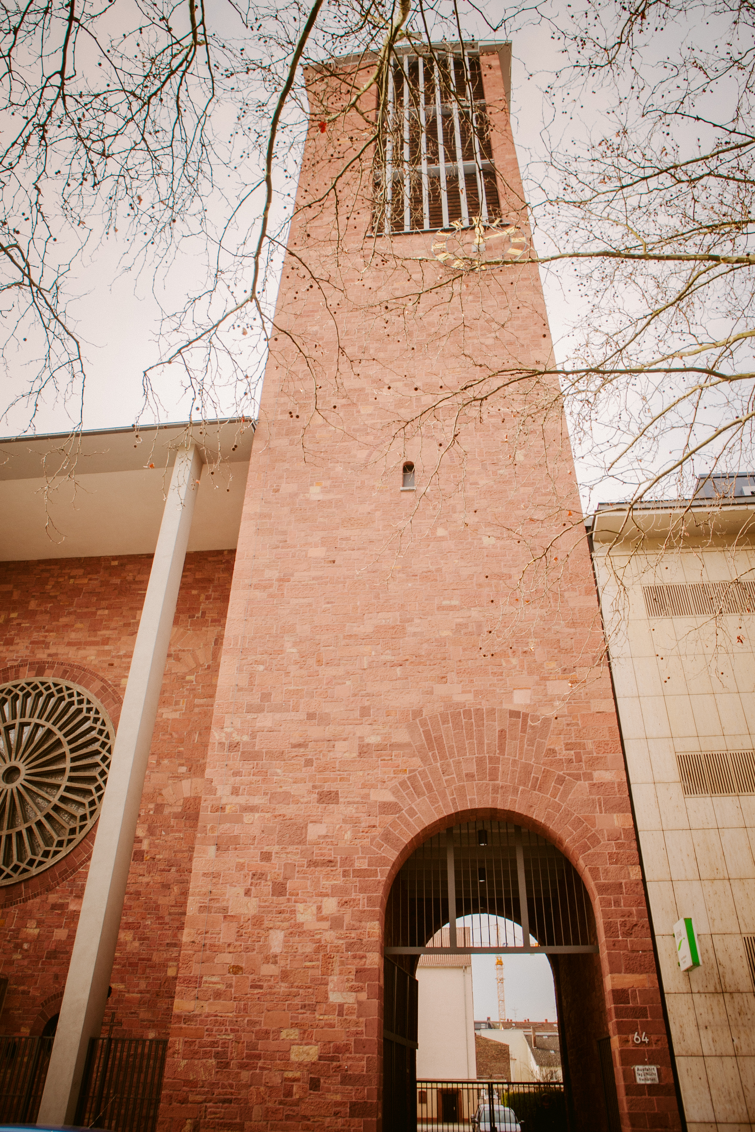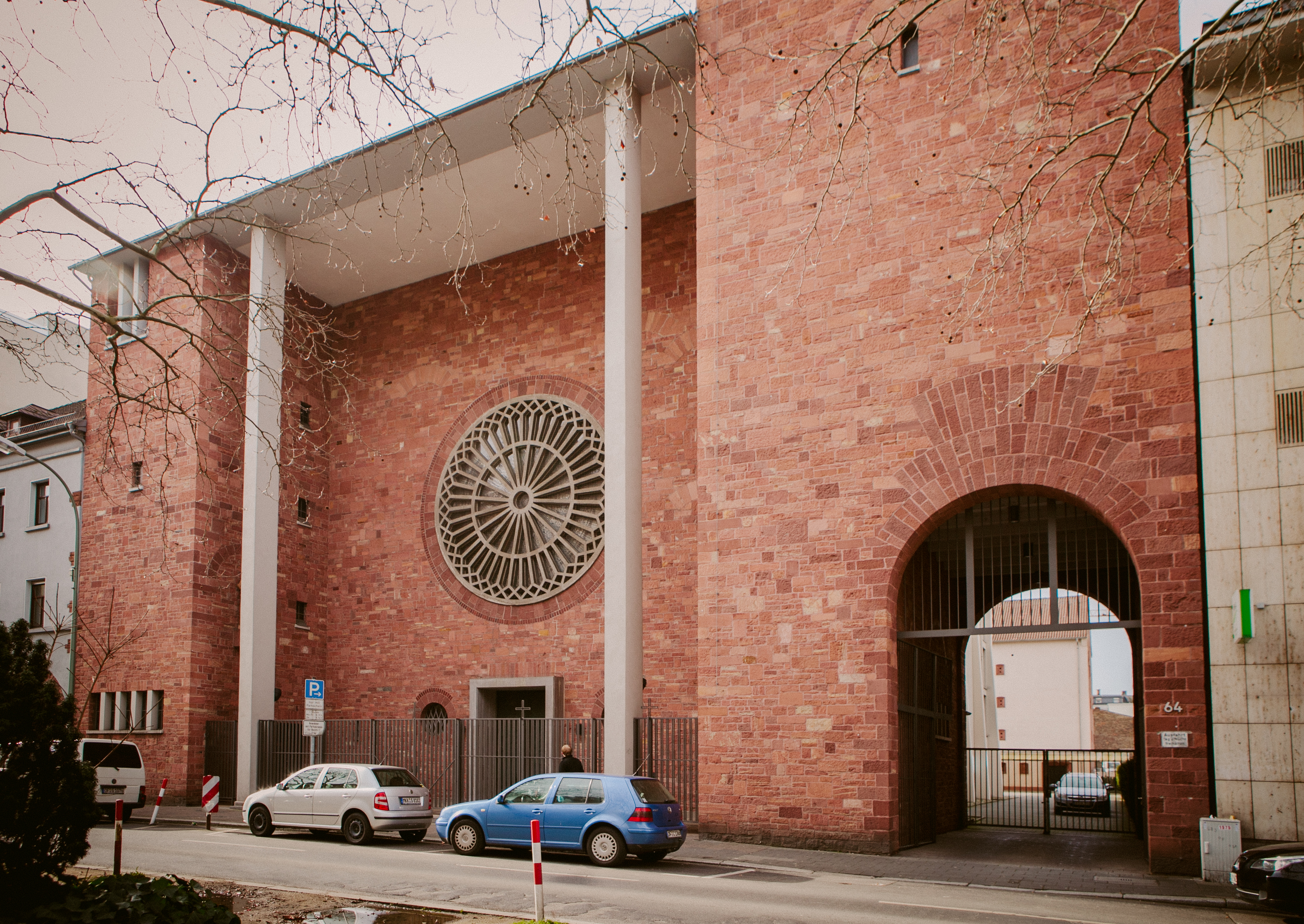 Die Sandsteinfassade der im Jahr 1950 von unserem Bürogründer Carl Müller erbauten kath. Pfarrkirche wurde im Jahr 2006 komplett saniert. Weiterhin wurden die Betonelemente einer grundlegenden Sanierung unterzogen. In diesem Zuge wurde ein Beleuchtungskonzept für das Gebäude geplant - abends werden die Buntglasfenster von Innen und der große, hohe Eingangsbereich von Außen eindrucksvoll beleuchtet.