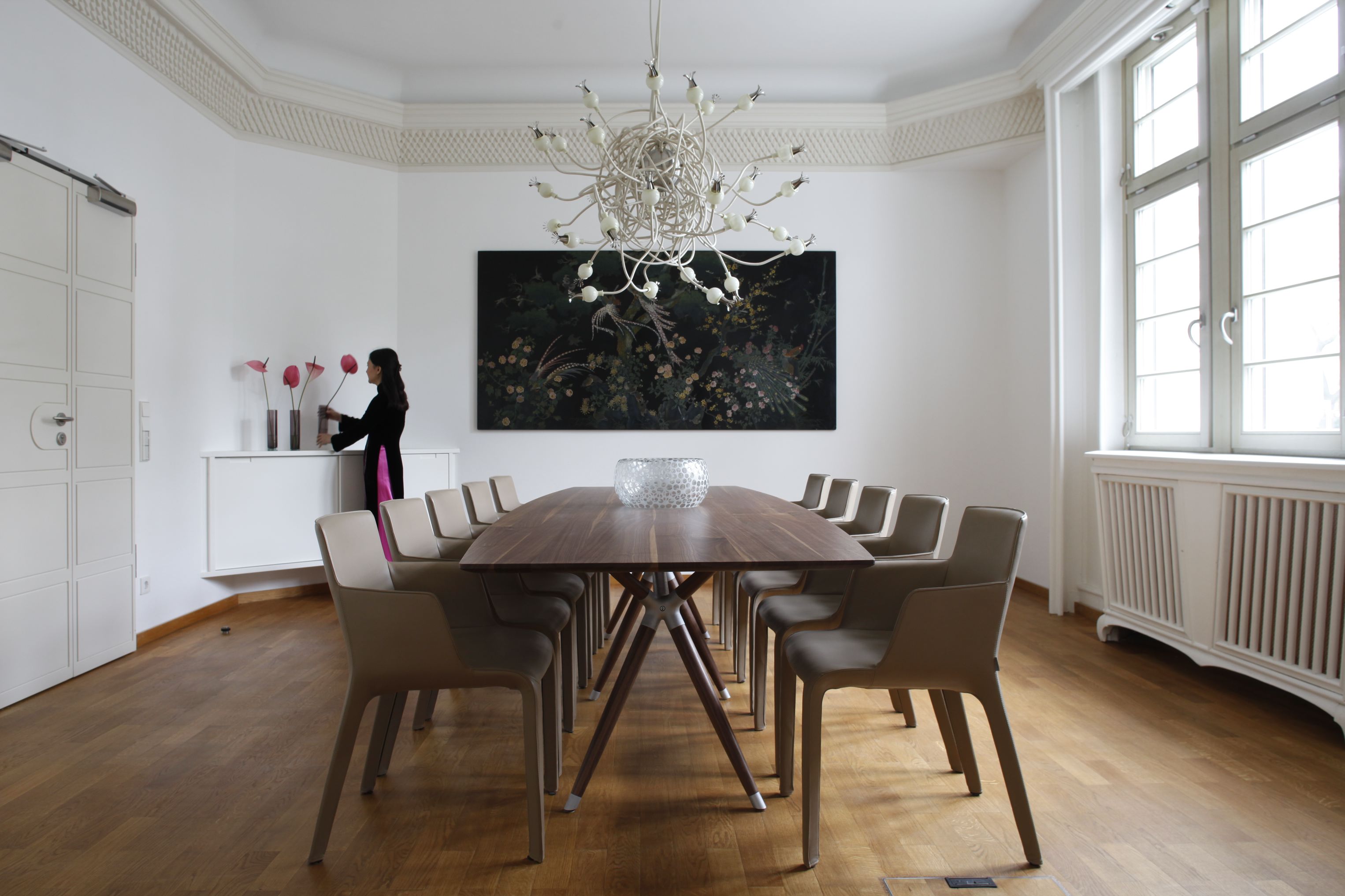 The villa from 1921 was partly rebuilt according to her tradition and carefully furnished in regard to public and representative needs. Street sides to the winter garden representable stairs have been installed. The appurtenant structures and required fencing have been creatively integrated into the concept. The annex, built around 1960, was interiorly completely rebuilt.